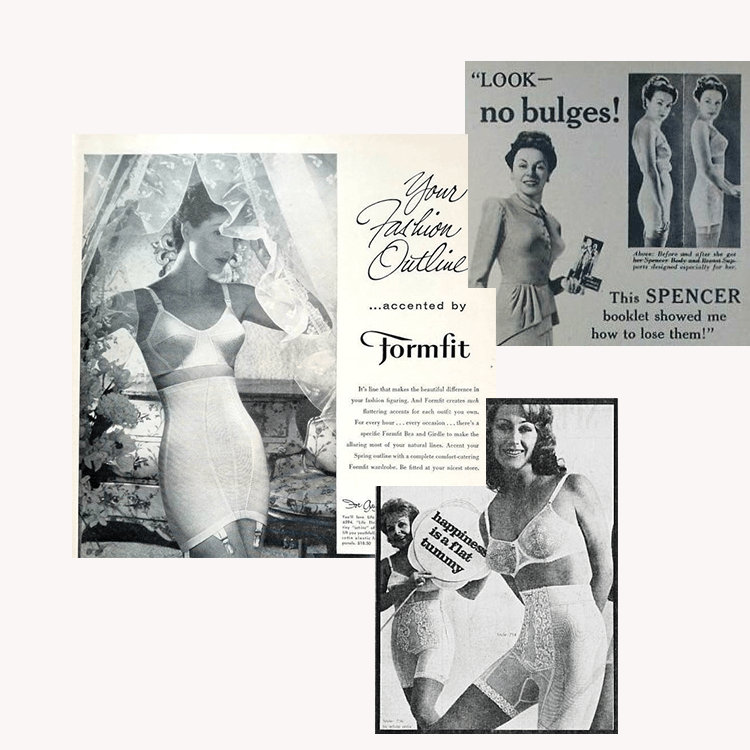 Shame-based marketing. That’s the traditional shapewear marketing approach (Pre-Spanx). For over 100 years, major manufacturers like Spencer and Spirella did the same thing. They used the old “Before and After Woman” advertising technique. They exploited women’s self-doubt to drive sales. Their ads featured exaggerated transformations.